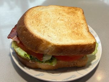 Crispy bacon, crisp lettuce, and juicy tomato slices and creamy mayo come together on toasted sourdough bread or croissant to create this classic B.L.T. sandwich.