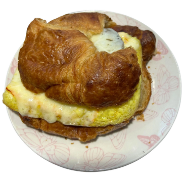 A savory sausage patty, fluffy scrambled egg, and creamy muenster or American cheese, all sandwiched between your choice of a toasted English muffin, croissant, or a warm bagel.