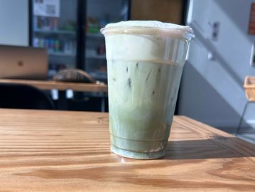 Made with ceremonial grade matcha powder, oat milk, honey, and topped with a delicious strawberry cold foam.